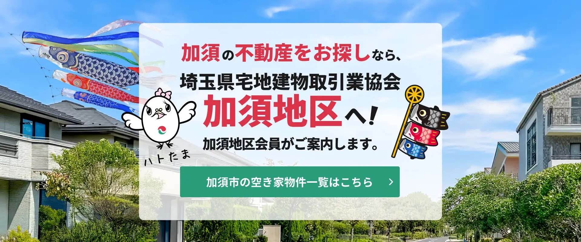 こちらは「埼玉県宅地建物取引業協会 北埼支部 加須地区」の公式ホームページです。